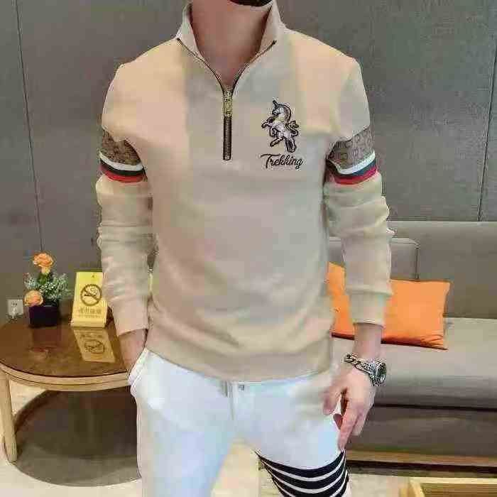 全清价8.5元潮牌半拉链撞色拼接立领长袖百搭修身印花休闲上衣卫衣,独立包...