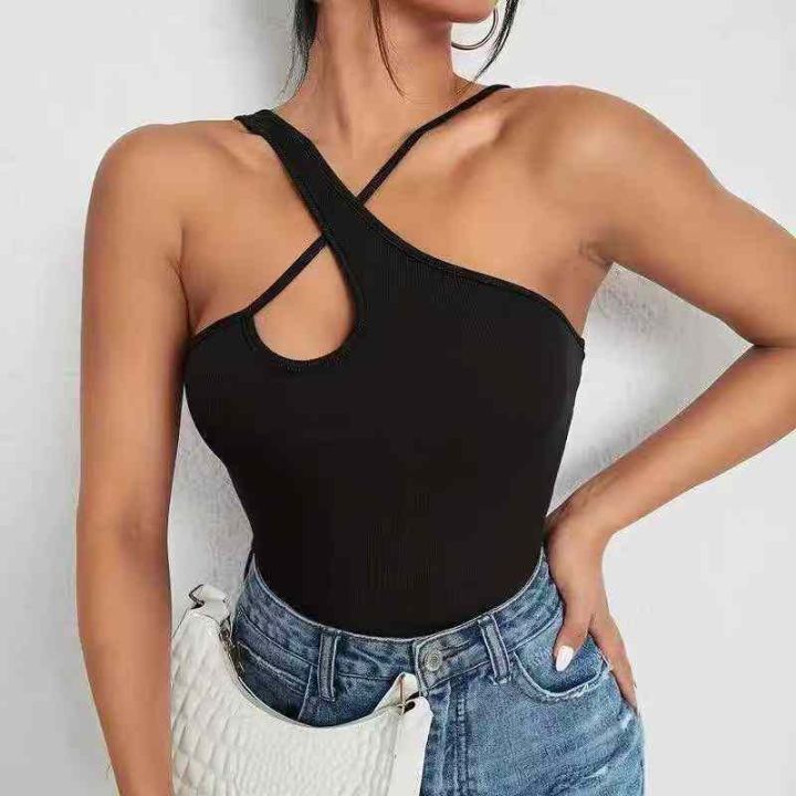 2025跨境欧美风夏季新款不规则肩带露肩抹胸背T恤女潮款码数:L-2XL数量:...