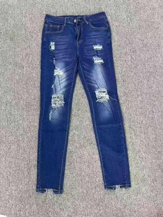牛仔裤男女同款破洞潮怀旧复古弹力紧身小脚牛仔裤,高弹力独立包装,码数S-...