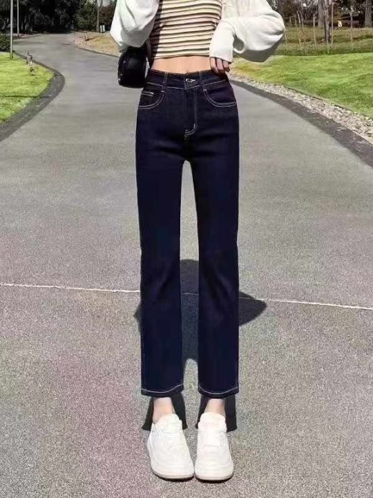 深蓝色高腰直筒牛仔裤女2025款休闲显瘦百搭弹力裤烟管裤,YKK拉链,高弹力...
