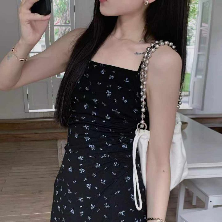 法式碎花吊带连衣裙140件8.8,面料舒适有弹力,褶皱设计,肩带可调节,码数...