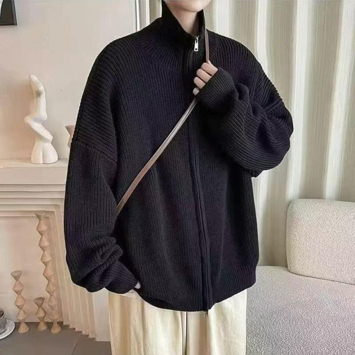 美式慵懒风高街潮流男女款毛衣粗线针织衫秋冬厚款拉链开衫外套上衣,图片款...