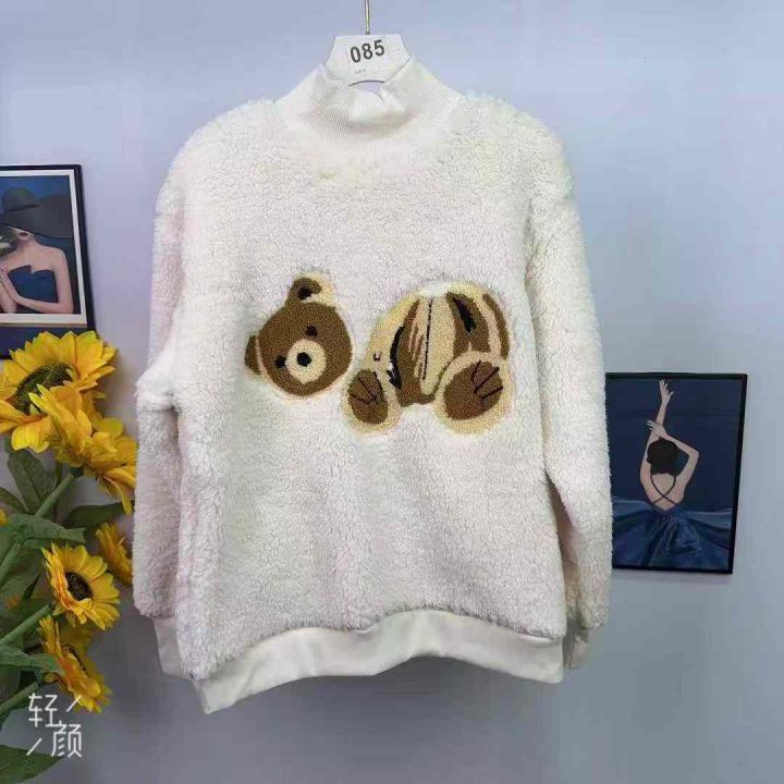 加绒加厚羊羔绒毛卫衣女秋冬刺绣小熊上衣,一个款两个面料,码数S M L XL X...