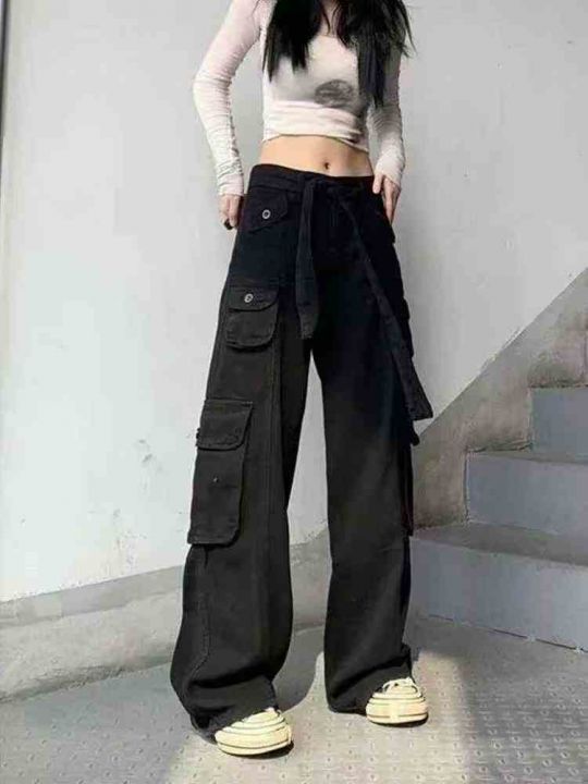 春秋新款洗水棉网红多袋工装牛仔直筒阔腿裤,独立包装带吊牌,码数XS-XL码...
