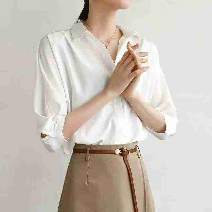 上新全清:10.8一件高级感纯色通勤轻奢清凉中袖白色衬衫,[爱心]45件左右,...