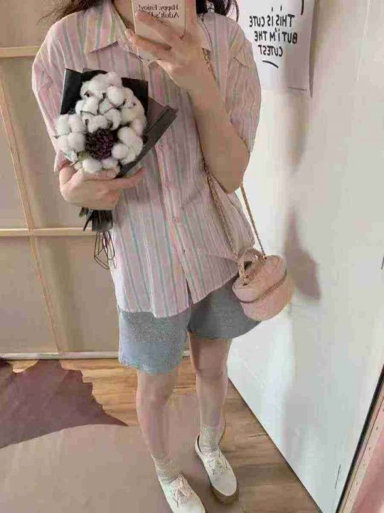上新全清:10.8一件多巴胺粉色条纹温柔别致百搭衬衫,[爱心]110件左右,码...