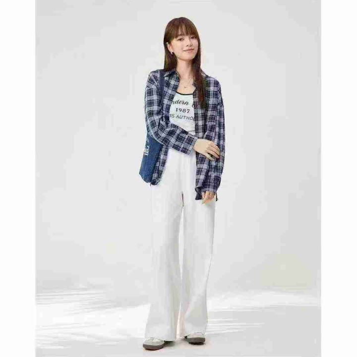 清8.8分货➕1纯棉正肩长袖t恤女纯欲洋气春季新款外穿修身上衣打底衫女ins潮...