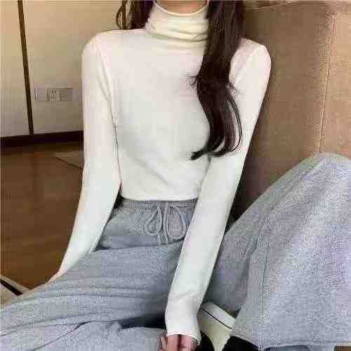 辣妹U领打底衫女春秋冬双面德绒紧身短款长袖T恤打底衫,144件,1-4码,独立...