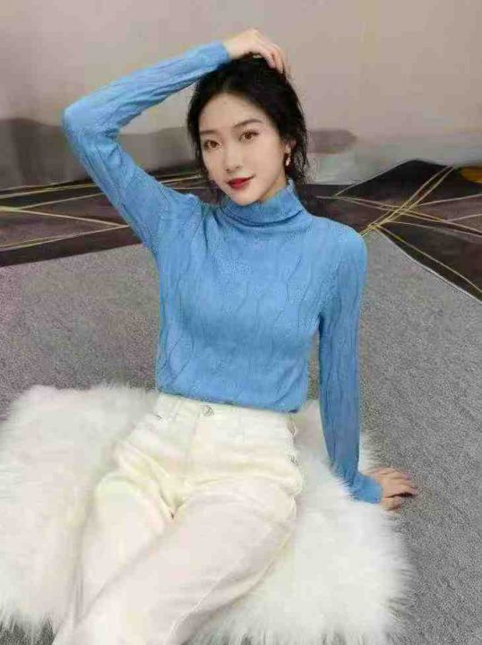 秋冬新款设计感堆堆领洋气弹力修身显瘦打底外穿包芯纱套头毛衣,独立包装,...