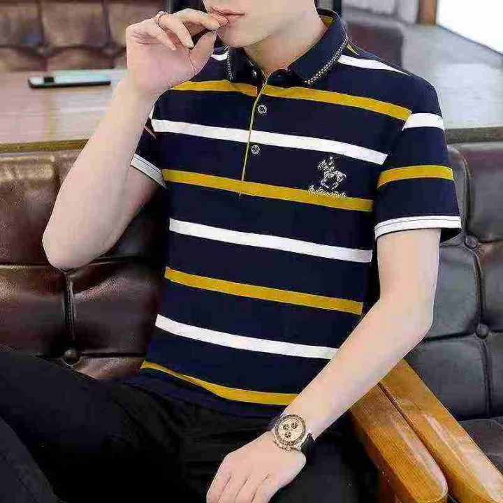 上新全清:8.8一件简约刺绣设计感条纹纯棉polo衫,[爱心]55件左右,码数L-4...