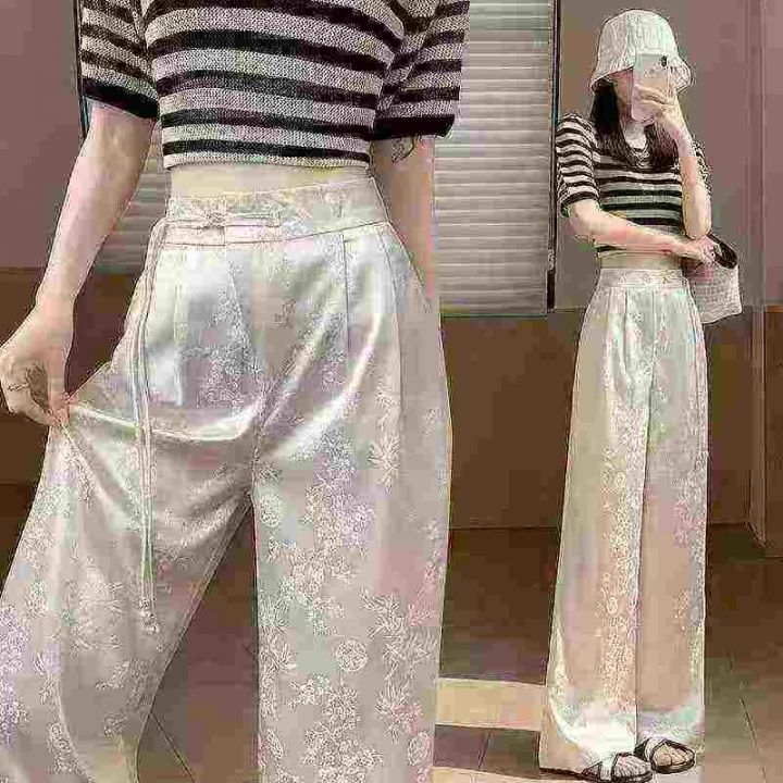 上新全清:18.8一件新中式国风盘扣高腰垂感阔腿女裤,[爱心]250件左右,杏...