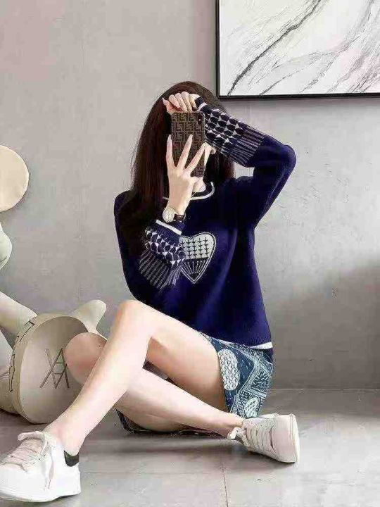 秋冬新款时尚气质减龄卡通拼接慵懒风宽松显瘦长袖针织套头毛衣,独立包装,...