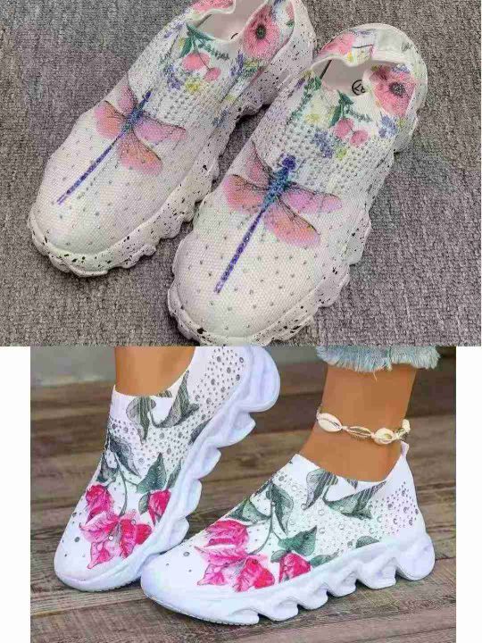 外贸大码男女鞋春季透气运动休闲鞋水钻彩虹闪亮飞织鞋底15000双,独立拉链...