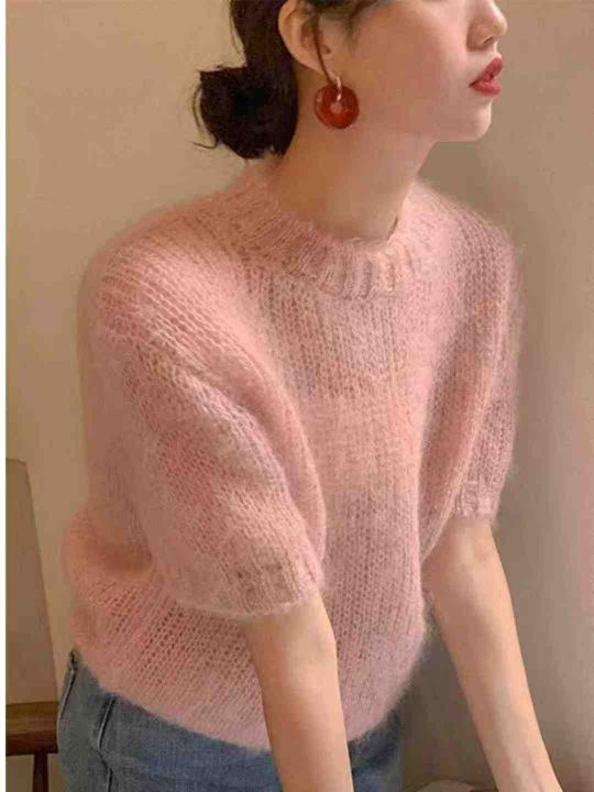 [啤酒]紫色毛织衫女装秋装新款韩系氛围感穿搭宽松百搭七分袖,面料柔软,独...