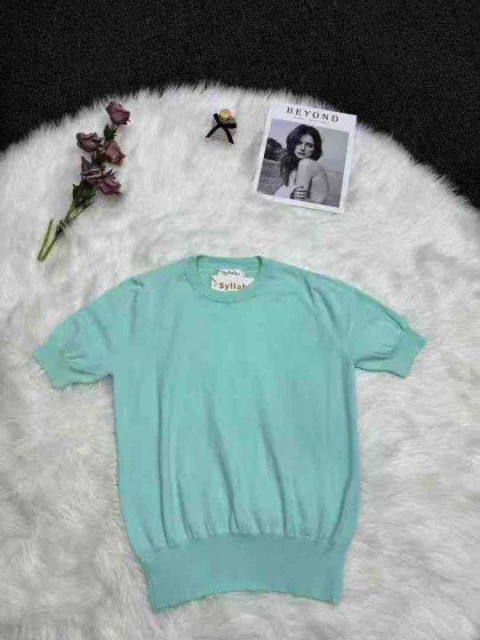 [啤酒]高级圆领短款打底冰丝上衣女夏季新款修身短袖针织T恤,码数SM,独立...