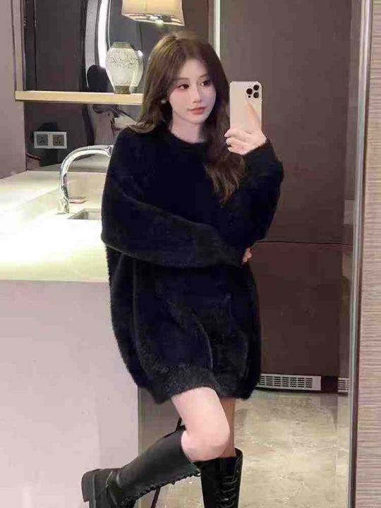 秋冬新款宽松慵懒软糯中长款水貂绒圆领套头毛衣,独立包装均码面料软糯厚实...