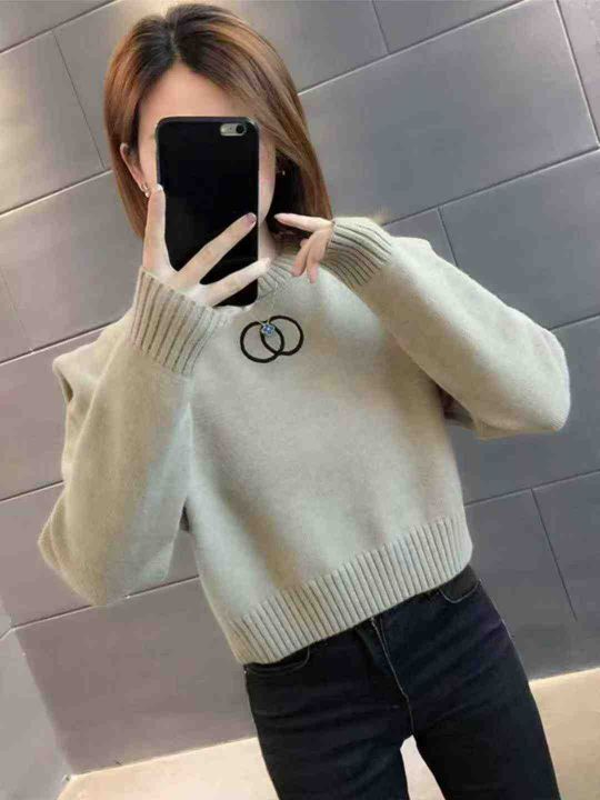 秋季新款小香风刺绣高级感气质慵懒风短款包芯纱套头毛衣,独立包装,均码面...