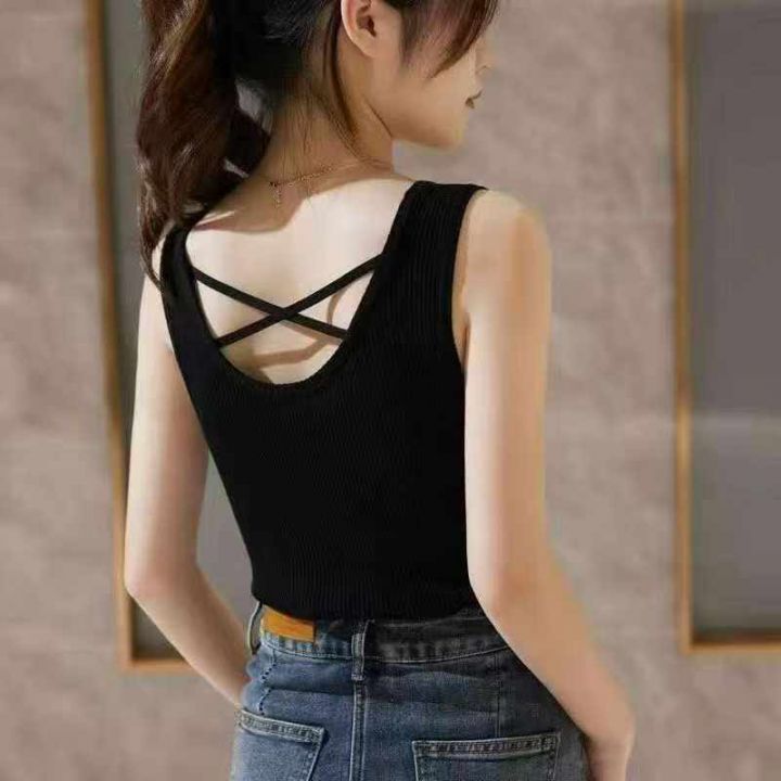 U领冰丝吊带女夏法式别致高级感交叉设计修身背心上衣,拉链独立包装 5300...
