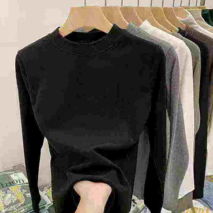 全清6.9 2025春季秋冬新款纯色德绒加厚修身小立领半高领长袖内搭...