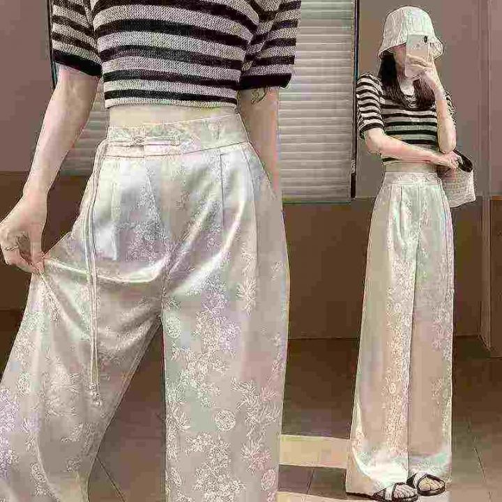上新全清:18.8一件新中式国风盘扣高腰垂感阔腿女裤,[爱心]250件左右,杏...