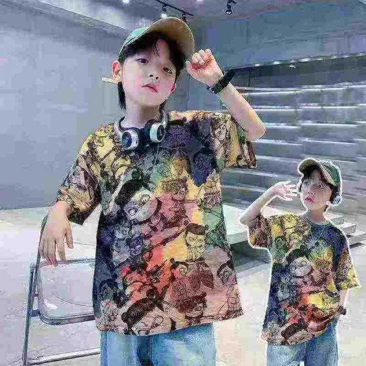 485件[红包]哪吒扎染短袖后领包边到肩,独立包装,国风动漫,码数110-170码...