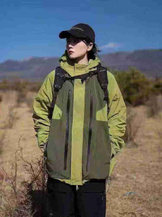 山系机能男女同款拼接撞色户外双层连帽·带里衬防风冲锋衣·晕染双拉链M-2X...