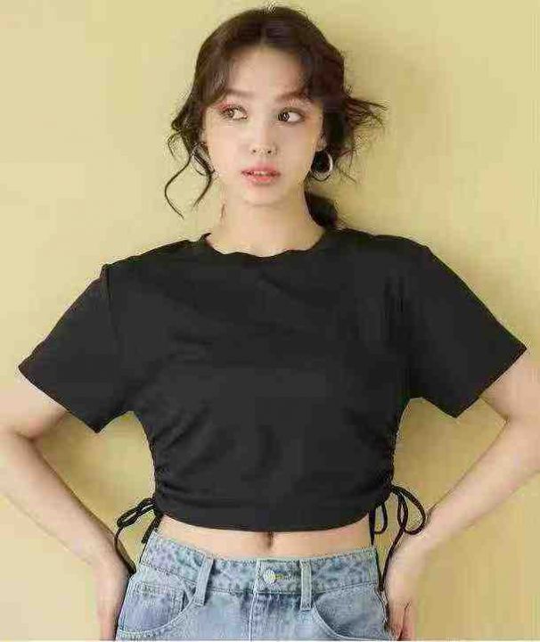 1000多件美式正肩抽绳甜美辣妹设计感小众减龄修身短款体恤,尺码:XL~4XL,...