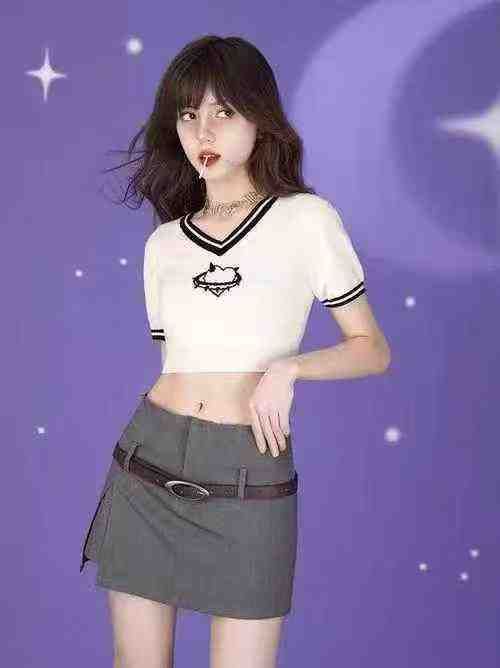 夏季新款弹力修身显瘦纯欲风辣妹高腰针织衫,独立包装带吊牌带防伪扣,均码...