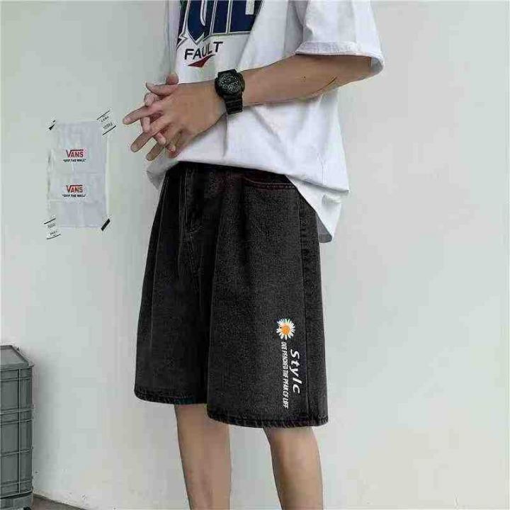 夏季男士港风雏菊宽松直筒洗水棉牛仔短裤,独立包装带吊牌,码数S-3XL码,4...