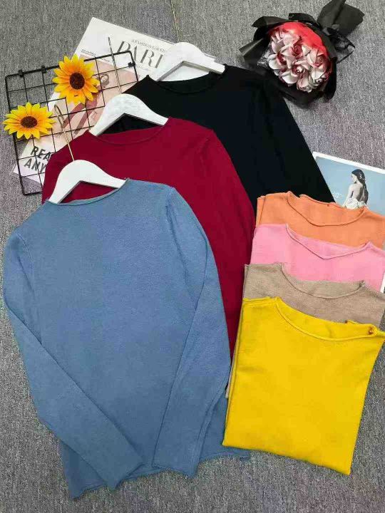 秋冬新款韩系休闲百搭气质纯色简约圆领包芯纱套头毛衣,独立包装,均码宽松...