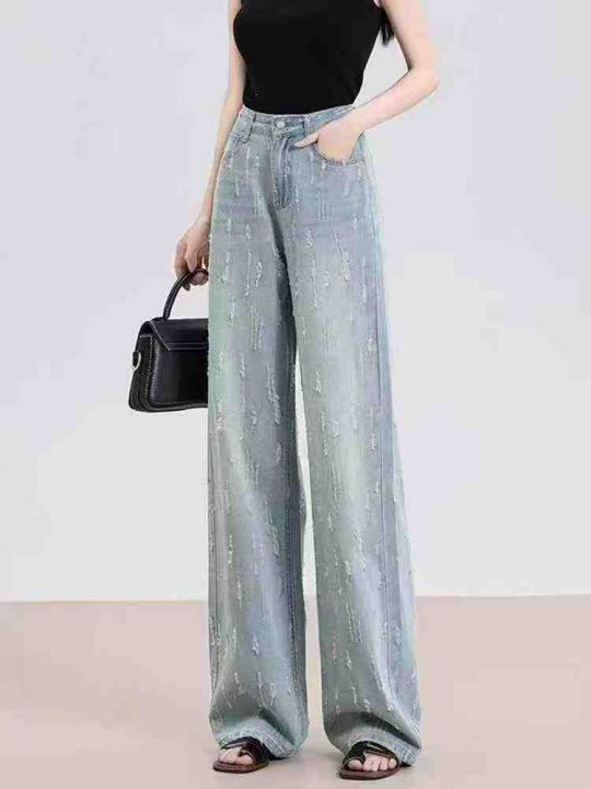 秋季新款洗水棉高腰显瘦宽松设计款阔腿垂感直筒浅色阔腿牛仔裤,独立包装带...