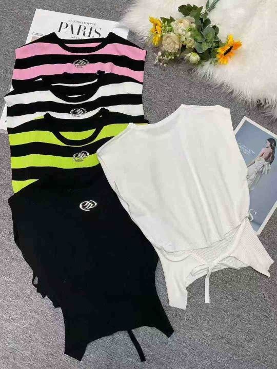 夏季新款小众甜辣正肩设计感绑带弹力修身显瘦针织小衫,独立包装,均码面料...