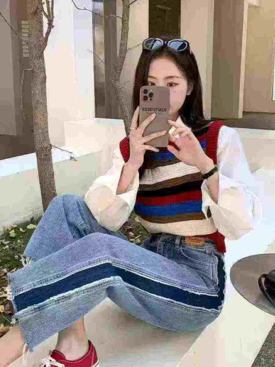 撞色毛边阔腿牛仔裤☕️260条全清11.8元,码数S到XL,图9有码数清单,独立...