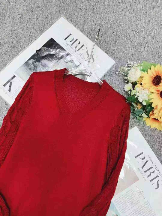 秋季新款宽松显瘦V领红色套头毛衣,独立包装,均码面料软糯舒适弹力大,114...