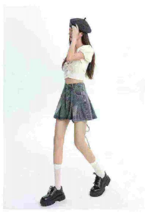 上新全清:8.8一件复古高腰百褶A字牛仔半身短裙,[爱心]135件左右,码数S-X...