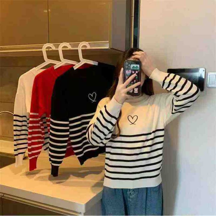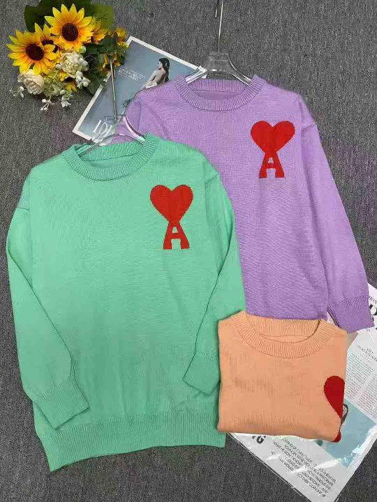 秋冬新款宽松慵懒风爱心提花圆领套头毛衣,独立包装,均码,面料柔软舒适,...
