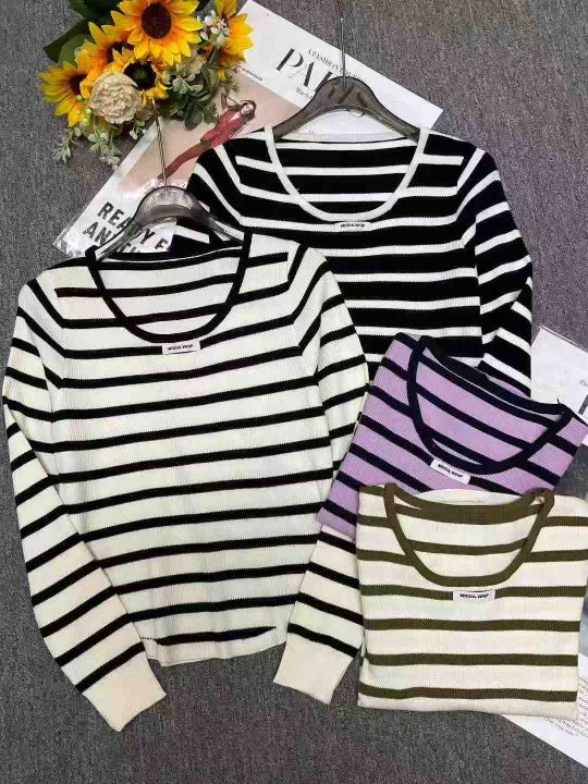 秋冬季新款撞色条纹宽松百搭包芯纱套头毛衣,独立包装,均码面料软糯舒适弹...