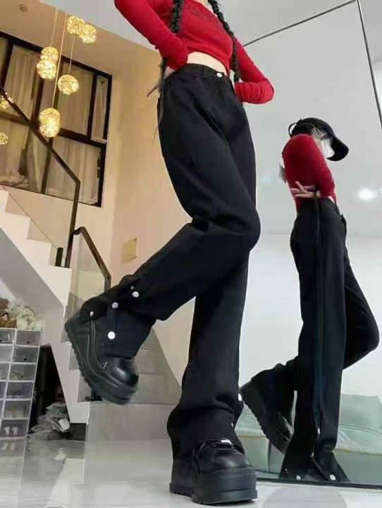 秋冬新款 新货黑色宽松百搭排扣设计款洗水棉牛仔直筒烟管裤,独立包装带吊...