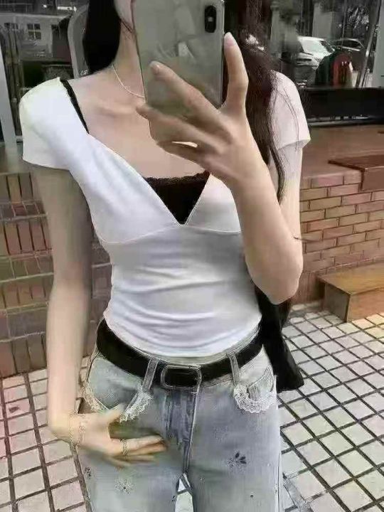 22000多件美式瑜伽辣妹风性感深V领时尚百搭短袖t恤,尺码:S~4XL,实体店...