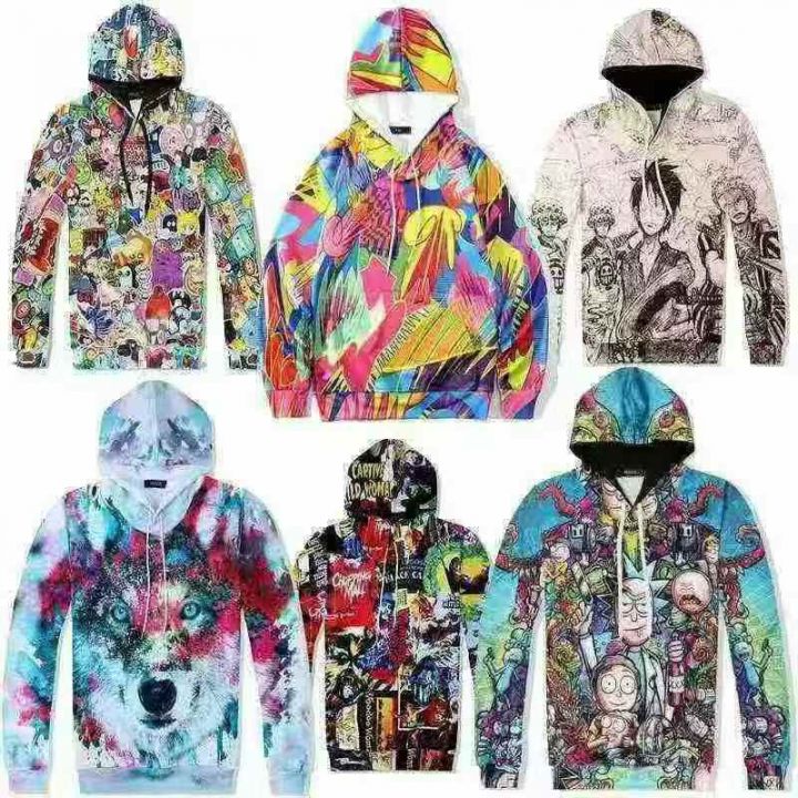 秋装男女3D卫衣休闲潮流图案连帽拉链和套头卫衣外套,独立包装,图案多,s...