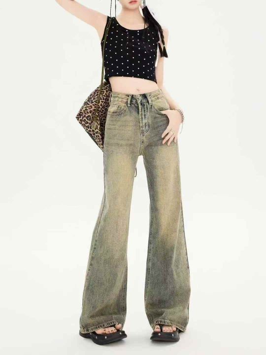 高品质☕️美式复古水洗做旧宽松版阔腿裤百搭新款宽松显瘦牛仔长裤530条全...