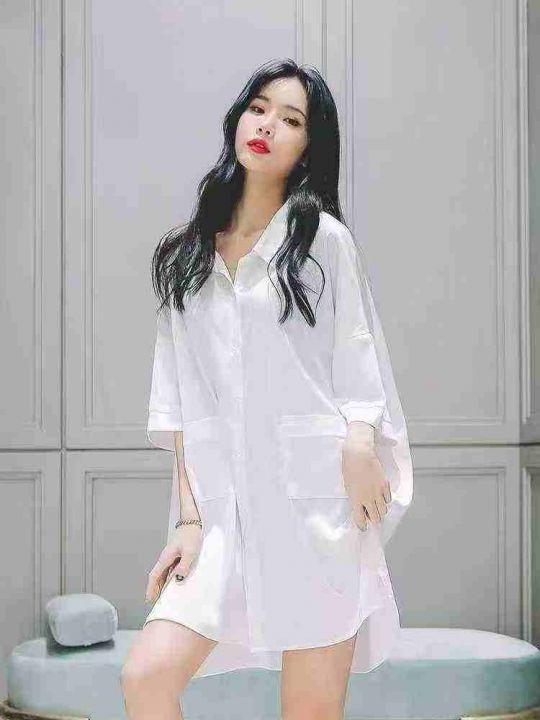 [月亮]:6.8秒杀清55件(不分货)[月亮]:夏季薄款纯欲男友风家居裙白衬衫[...