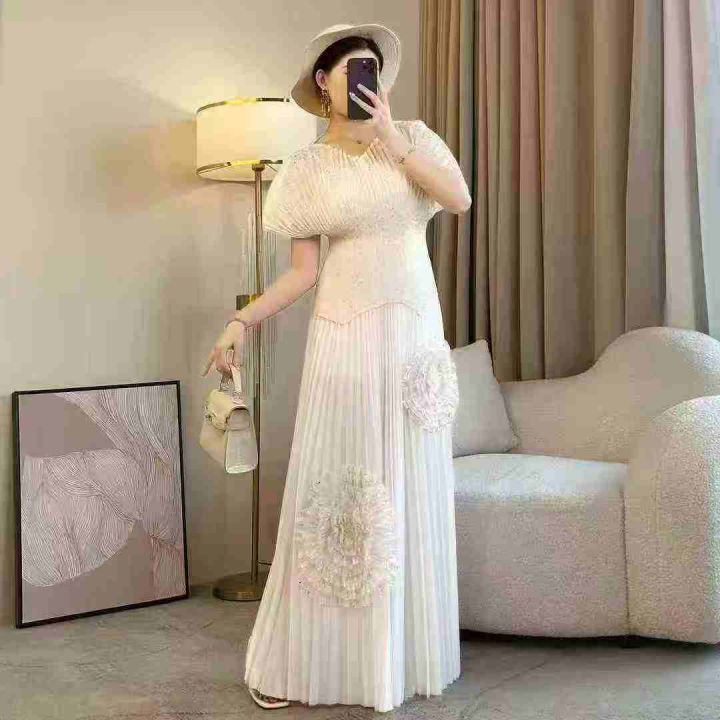 100套左右三宅轻奢重工烫金大盘花长半裙褶皱两件套收腰短袖蝙蝠衫两件套!...