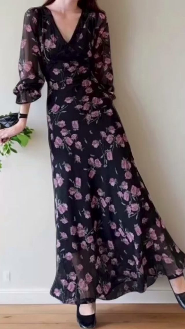 ☕️法式碎花连衣裙夏季新款高级感收腰显瘦v领雪纺连衣裙150件全清9.8元,...