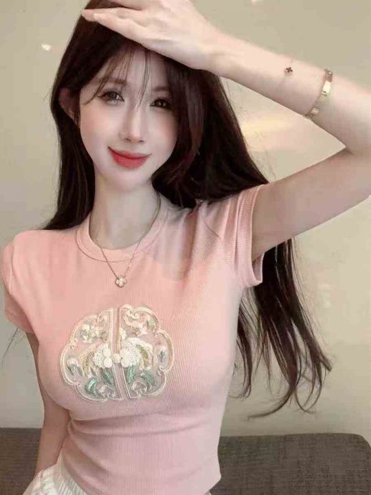 ☕️纯棉国风刺绣辣妹T恤1032件全清7.8元,分货8.8元,码数S到XXL高弹力,2...