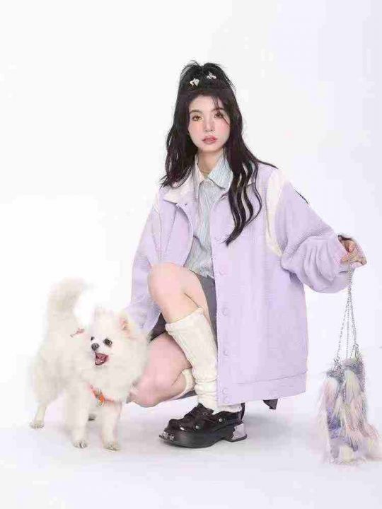 [月亮]:9.5清158件(不分货)[月亮]:香芋紫棒球服华夫格撞色外套[月亮]:...