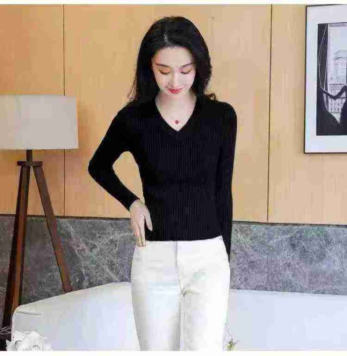 高腰内搭修身秋冬V领针织衫毛衣打底衫,独立包装,均码,550件,清6.5元,...