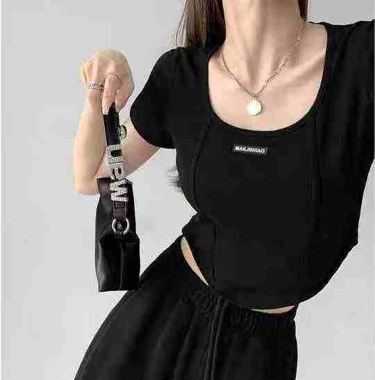 [月亮]:4.5清1069件[月亮]:美式纯欲辣妹风弧型不规则T恤[月亮]:1234,独...