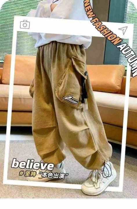 工装春夏季新款儿童装男童裤子休闲裤中大童宽松男孩工装长裤,斜纹棉面料,...