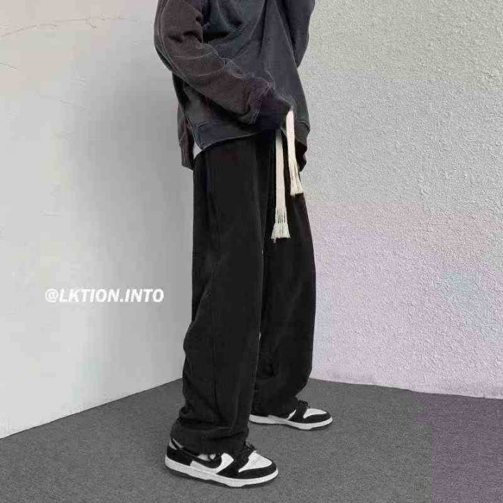 新款灯芯绒裤子男大抽绳ins潮宽松直筒休闲裤垂感阔腿裤,独立包装,整款三...